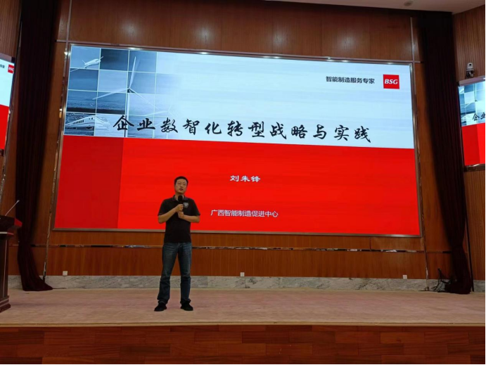 在培訓(xùn)中,劉朱鋒先生以“新時(shí)代背景下的企業(yè)數(shù)字化建設(shè)“為主題,分享了新時(shí)代背景下的機(jī)遇與挑戰(zhàn),同時(shí),結(jié)合近年來(lái)實(shí)施的相關(guān)成功案例為大家詳細(xì)闡述了企業(yè)智能制造轉(zhuǎn)型升級(jí)的關(guān)鍵能力和實(shí)現(xiàn)路徑。他提醒,廣西的中小企業(yè)的轉(zhuǎn)型升級(jí)必須有利于加強(qiáng)自身的核心競(jìng)爭(zhēng)力,智能化升級(jí)并非是買(mǎi)一套智能化設(shè)備、上一套自動(dòng)化軟件就能夠完成的。