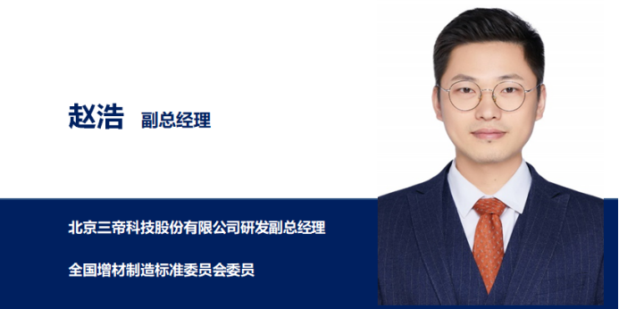趙浩博士分享了題為《產(chǎn)業(yè)化金屬增材制造技術(shù)與應(yīng)用》的報(bào)告,分別對(duì)金屬增材制造幾個(gè)主線技術(shù)的進(jìn)展及應(yīng)用進(jìn)行了詳盡而深入的講解,對(duì)三帝科技自主研發(fā)的3DP/SLS金屬件快速鑄造工藝在航空航天、汽車、工業(yè)機(jī)械等領(lǐng)域的成熟產(chǎn)業(yè)化應(yīng)用進(jìn)行了分享,并對(duì)BJ粘結(jié)劑噴射金屬打印技術(shù)的研發(fā)進(jìn)展及未來發(fā)展趨勢進(jìn)行了分析和展望。他認(rèn)為,當(dāng)前金屬增材制造正在逐步走向成熟,隨著高效率、低成本、量產(chǎn)型技術(shù)的出現(xiàn),產(chǎn)業(yè)化應(yīng)用空間不斷拓寬,對(duì)人才培養(yǎng)的需求增長,將創(chuàng)造出廣闊的產(chǎn)教融合機(jī)遇,三帝科技期待與更多的院校和科研機(jī)構(gòu)開展深入合作,共同推進(jìn)新技術(shù)、新應(yīng)用的創(chuàng)新發(fā)展。